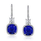 Blue Cushion Sapphire and Diamond Drop Earrings