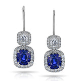 Blue Cushion Sapphire and Diamond Drop Earrings