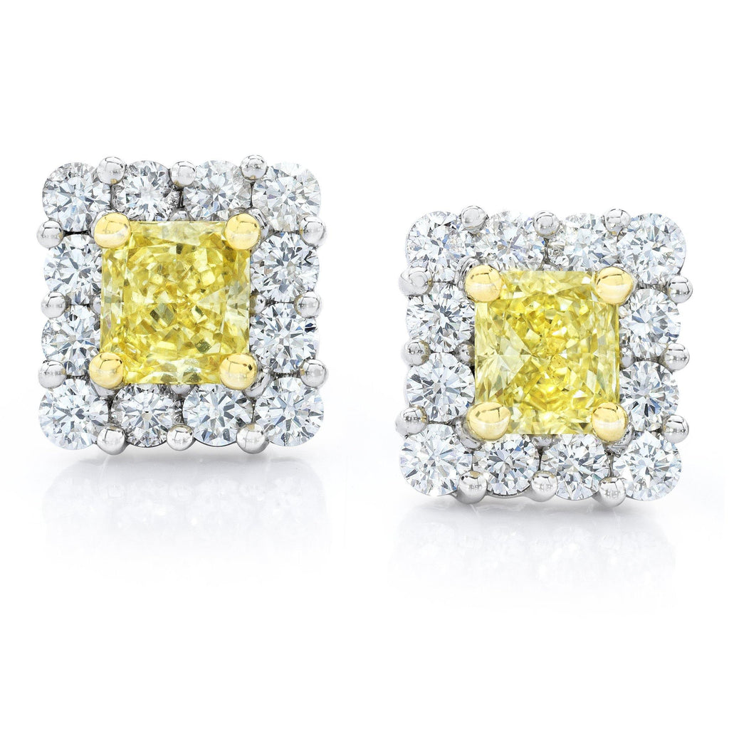 DetailsTwo Radiant Cut Fancy Yellow Diamonds weighing 1.08 carats and 24 Brilliant Cut Diamonds weighing .83 Carats set in platinum with 18k yellow gold Pair of cuff-links.