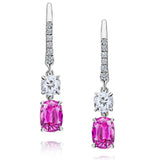 2.56 carat Pink Sapphire with 14 Diamonds 1.33 carats mounted in lever-back earrings