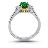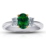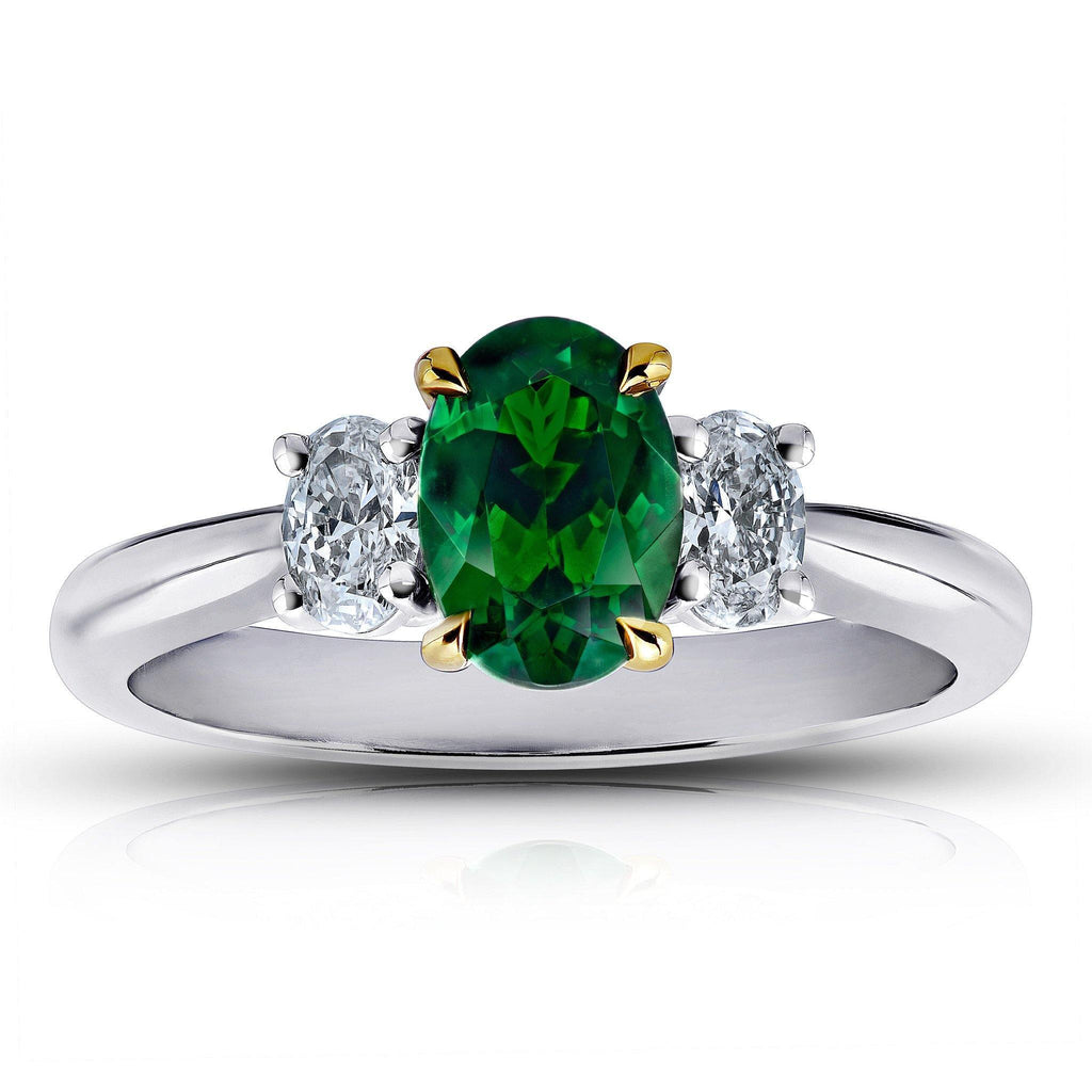 1.14 carat Oval Green Tsavorite Cushion Ring with oval diamonds weighing .37 carats set in platinum & 18k Yellow Gold.