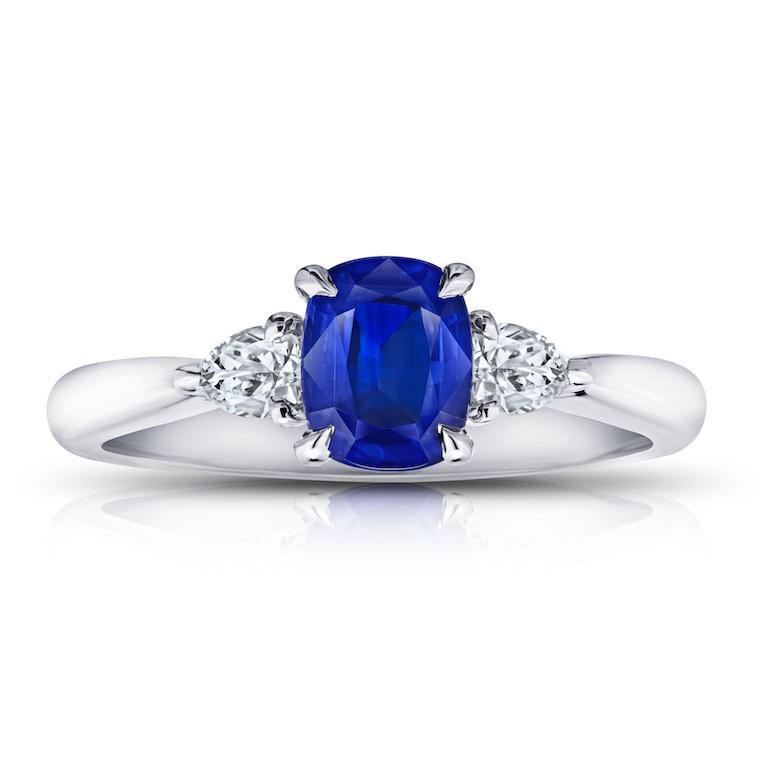 Details1.16 carat cushion blue sapphire with pear shape diamonds .28 carats set in a platinum ring.