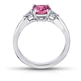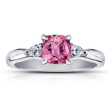 Details1.16 carat padparadscha cushion sapphire with pear shape diamonds .18 carats set in platinum ring |
