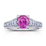 1.38 carat cushion pink sapphire and Diamond Platinum Ring