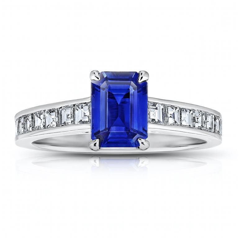 1.50 Carat Emerald Cut Blue Sapphire and Diamond Platinum Ring