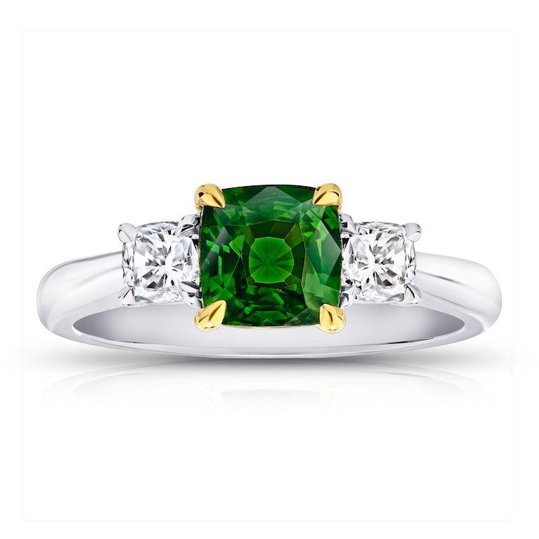 1.58 Carat Cushion Green Tsavorite Ring