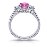 1.58 carat pink cushion sapphire with square emerald diamonds .56 carats set in platinum ring