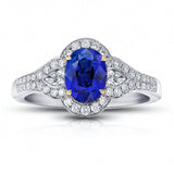 1.63 Carat Oval Blue Sapphire and Diamond ring