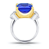 13.97 Carat Emerald Cut Blue Tanzanite and Diamond Ring