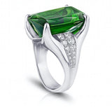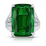 14.78 Carat Cushion Green Tourmaline and Diamond Ring