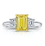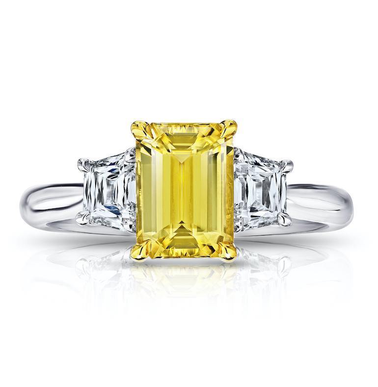2.05 Carat Emerald Cut Yellow Sapphire and Diamond Ring