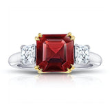 4.09 carat asscher cut burma red spinel with antique asscher cut diamonds .91 carats set in platinum & 18k yellow gold ring