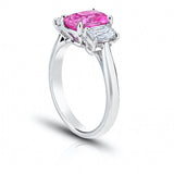 2.50 carat Pink Cushion Sapphire ring with diamonds weighing 1.06 carats set in a custom platinum mounting.