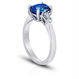 2.79 carat Blue Sapphire Cushion Ring with bullet shape diamonds .32 carats (F, VS1-VS2)