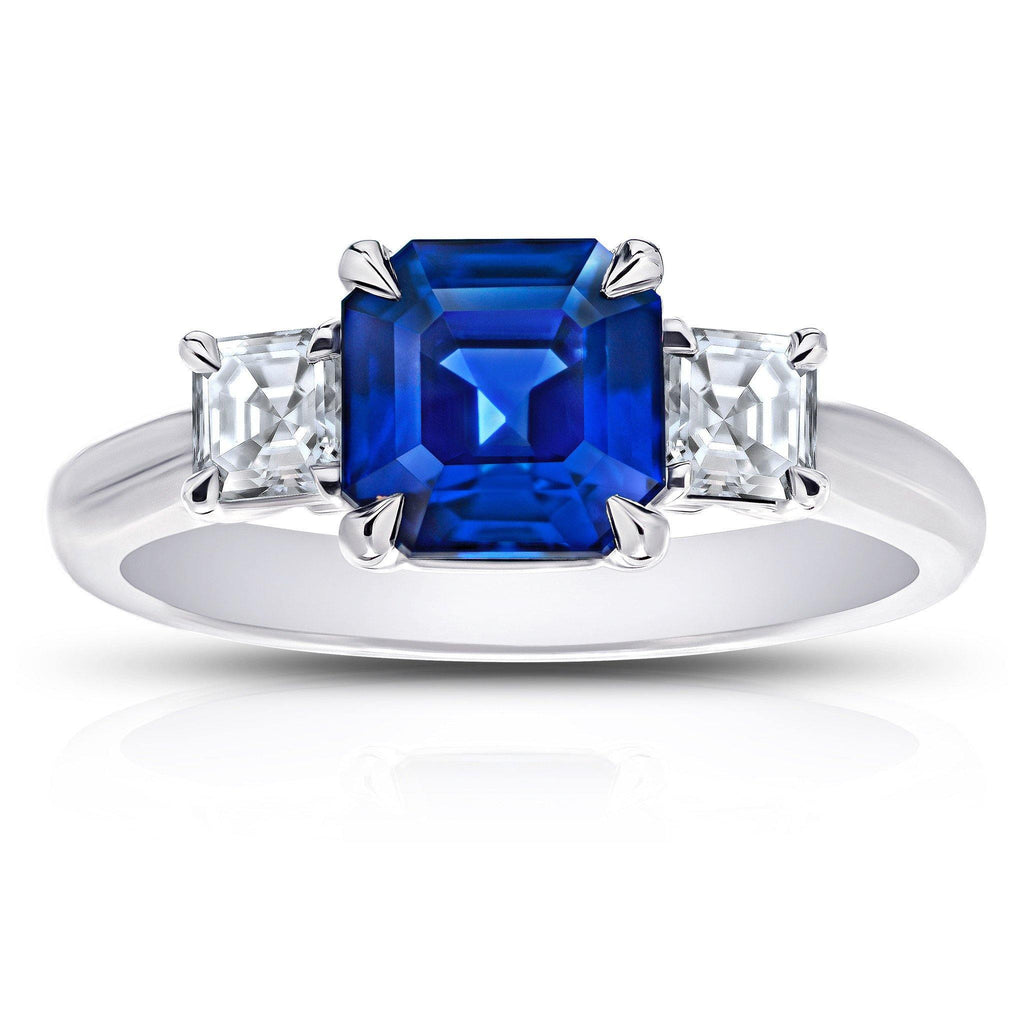 2.48 carat Emerald Cut Blue Sapphire Ring, with Asscher Cut diamonds weighing 0.59 carats