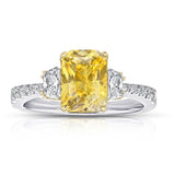 3.01 Carat Radiant Yellow Sapphire and Diamond Ring
