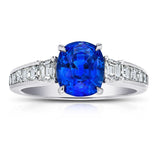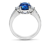 3.05 Carat Cushion Blue Sapphire Ring, with diamonds weighing 0.80 carats.