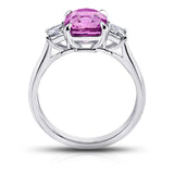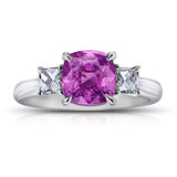 3.08 carat Pink Cushion Sapphire Ring with square french cut diamonds .46 carats set in platinum