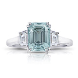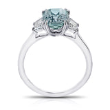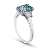 3.12 Carat Emerald Cut Bluish Green Sapphire and Diamond Ring