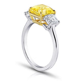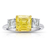 3.48 Carat Square Emerald Cut Yellow Sapphire and Diamond Ring