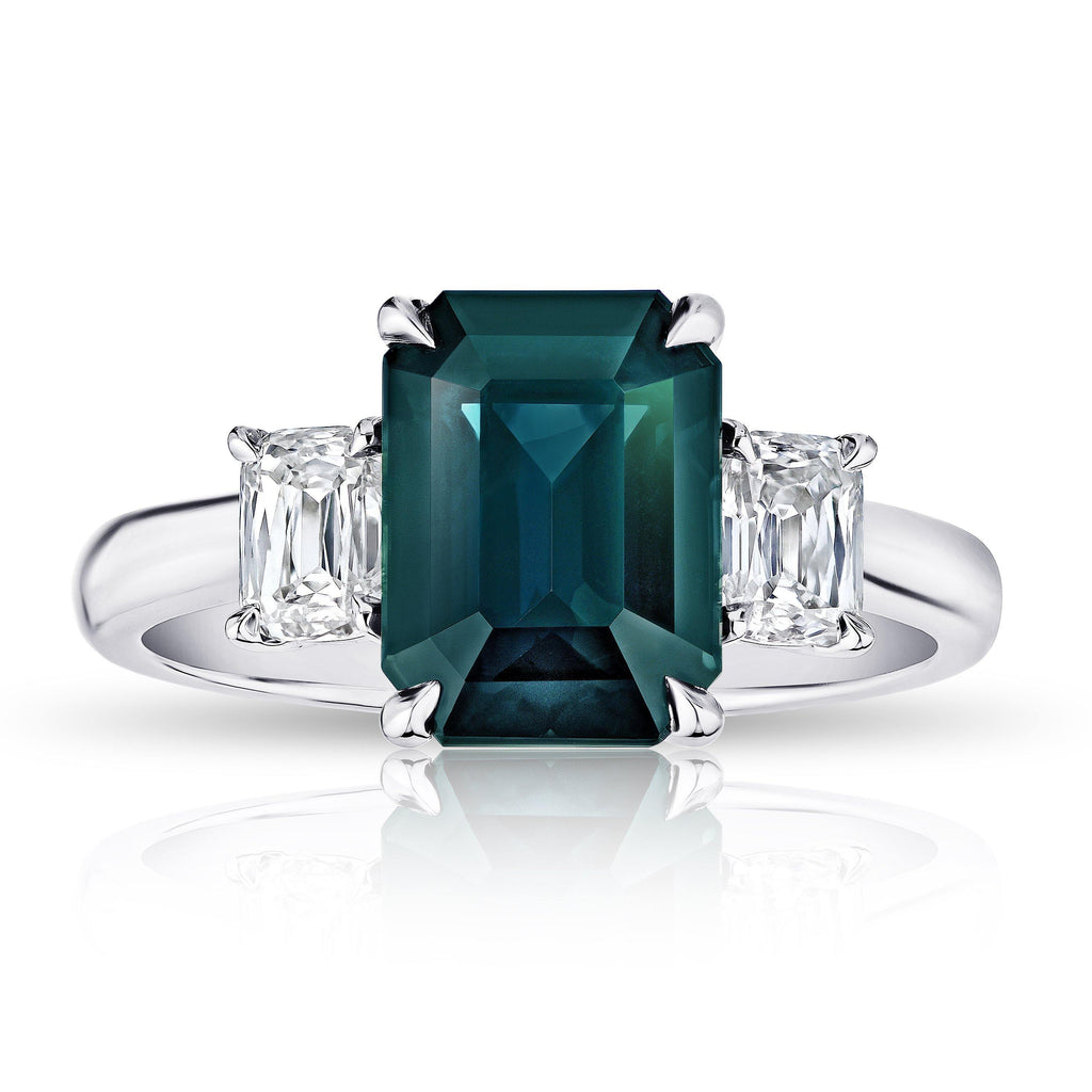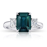 3.79 Carat Emerald Cut Green Sapphire and Diamond Ring