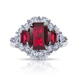 3.83 Carat Emerald Cut Red Ruby and Diamond Platinum Ring