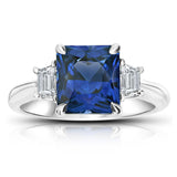3.90 carat Radiant Cut Blue Sapphire Ring with Trapezoid cut diamonds weighing 0.47 carats