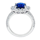Details4.03 Carat Cushion Blue Sapphire with 1.38 Carat Diamonds set in a Platinum Ring |