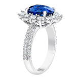 4.03 Carat Cushion Blue Sapphire with 1.38 Carat Diamonds set in a Platinum Ring
