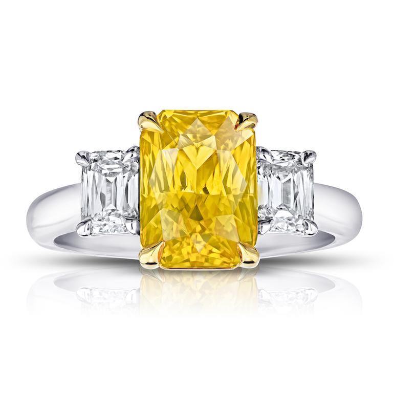 4.07 Carat Radiant Cut Yellow Sapphire Ring