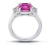 4.37 Carat Emerald Cut Pink Sapphire and Diamond Ring