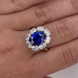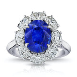 4.37 Carat Oval Blue Sapphire and Diamond Ring