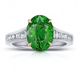 4.37 Carat Oval Green Tsavorite and Diamond Ring