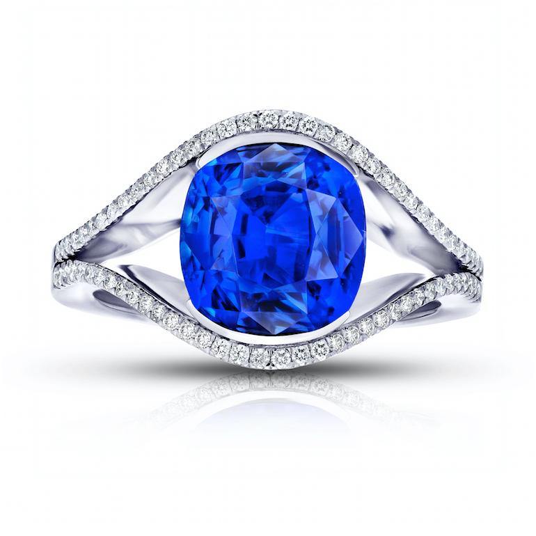 4.63 Carat Cushion Blue Sapphire And Diamond Ring