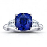 5.03 Carat Cushion Blue Sapphire and Diamond Ring