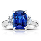 5.62 carat (No Heat) Cushion Blue Sapphire Ring with Trapezoid shape diamonds weighing 0.49 carats