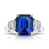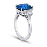 5.98 Carat Emerald Cut Sapphire and Diamond Ring