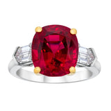6.25 Carat Cushion Red Sapphire and Diamond Platinum Ring