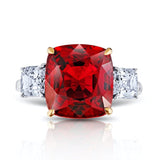 6.39 carat Cushion Red Spinel with Diamonds set in a handmade Platinum & 18k ring