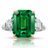 Details7.02 carat Emerald Cut Green Tsavorite with French Cut Trapezoid Diamonds weighing .86 carats set in a Platinum and 18k Yellow Gold ring. |