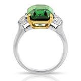 7.02 carat Emerald Cut Green Tsavorite and Diamond Ring