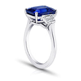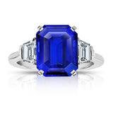 7.11 Carat Emerald Cut Blue Sapphire and Diamond Ring
