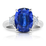 7.58 carat Cushion Blue Sapphire Ring, with Half Moon shaped diamonds weighing 0.62 carats
