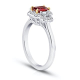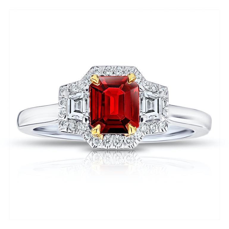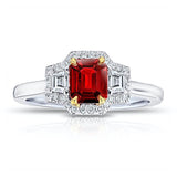 .72 Carat Emerald Cut Red Ruby and Diamond Ring
