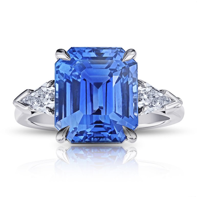 9.19 CT Emerald Blue Sapphire with Shield Diamonds .54 Carats set in a Platinum Ring