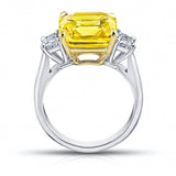 9.67 Carat Radiant Yellow Sapphire and Diamond Ring