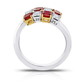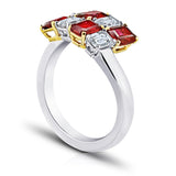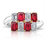 DetailsFour Natural No Heat Emerald Cut Rubies weighing 1.81 carats and four emerald cut diamonds (D-F/ VVS) weighing 1.07 carats. Set in a hand made platinum and 18k yellow gold ring.