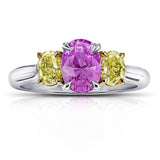 1.63 carat pink oval sapphire with natural fancy yellow oval cut diamonds .94 carats set in platinum & 18k yellow gold ring