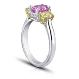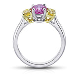 Details1.63 carat pink oval sapphire with natural fancy yellow oval cut diamonds .94 carats set in platinum & 18k yellow gold ring |