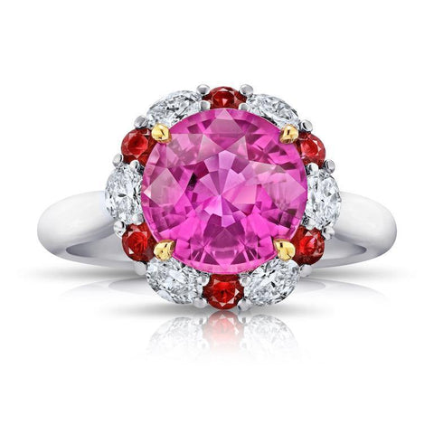 4.04 Carat Round Pink Sapphire Ruby and Diamond Ring